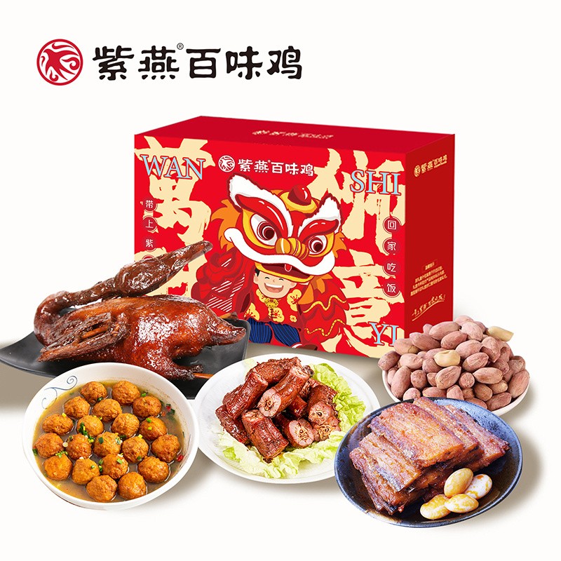 紫燕百味鸡 万狮胜意休食礼盒(紫燕酱鸭 450g+紫燕外婆肉丸 200g+紫燕豆香带鱼 60g+紫燕双椒鸭脖 62g+紫燕奶油花生 110g)