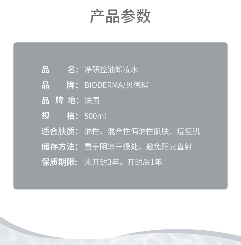 BIODERMA/贝德玛 舒妍洁肤卸妆水 蓝水 500ML