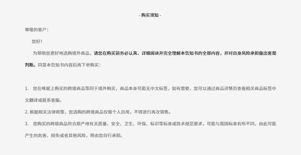 唯妮海购海外直邮的商品,无法直接退回发货地 ,故不支持无理由退换货。 以下两种情况烦请与客服沟通,提供相应凭证后会尽快处理。