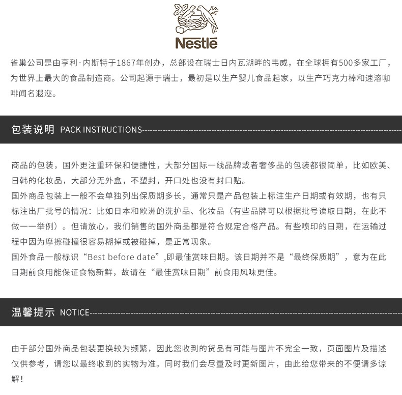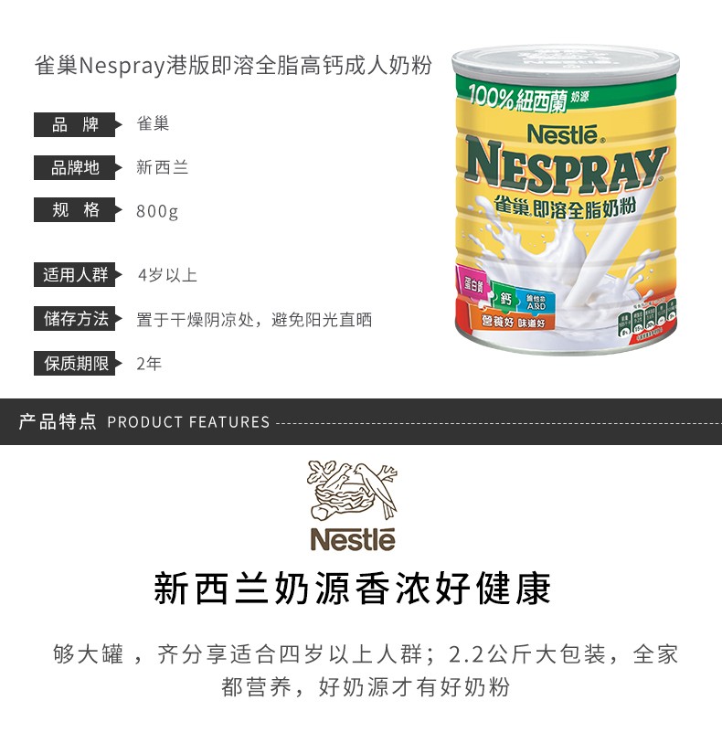 【2022年09到期】NESTLE/雀巢 成人中老年全脂高钙即溶奶粉 800G