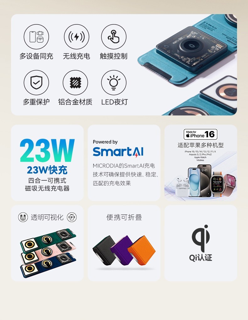 MICRODIA/高科迪 23W 四合一(含LED灯)可折叠磁吸无线充电器
