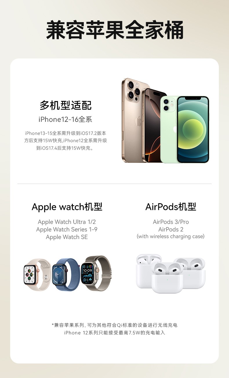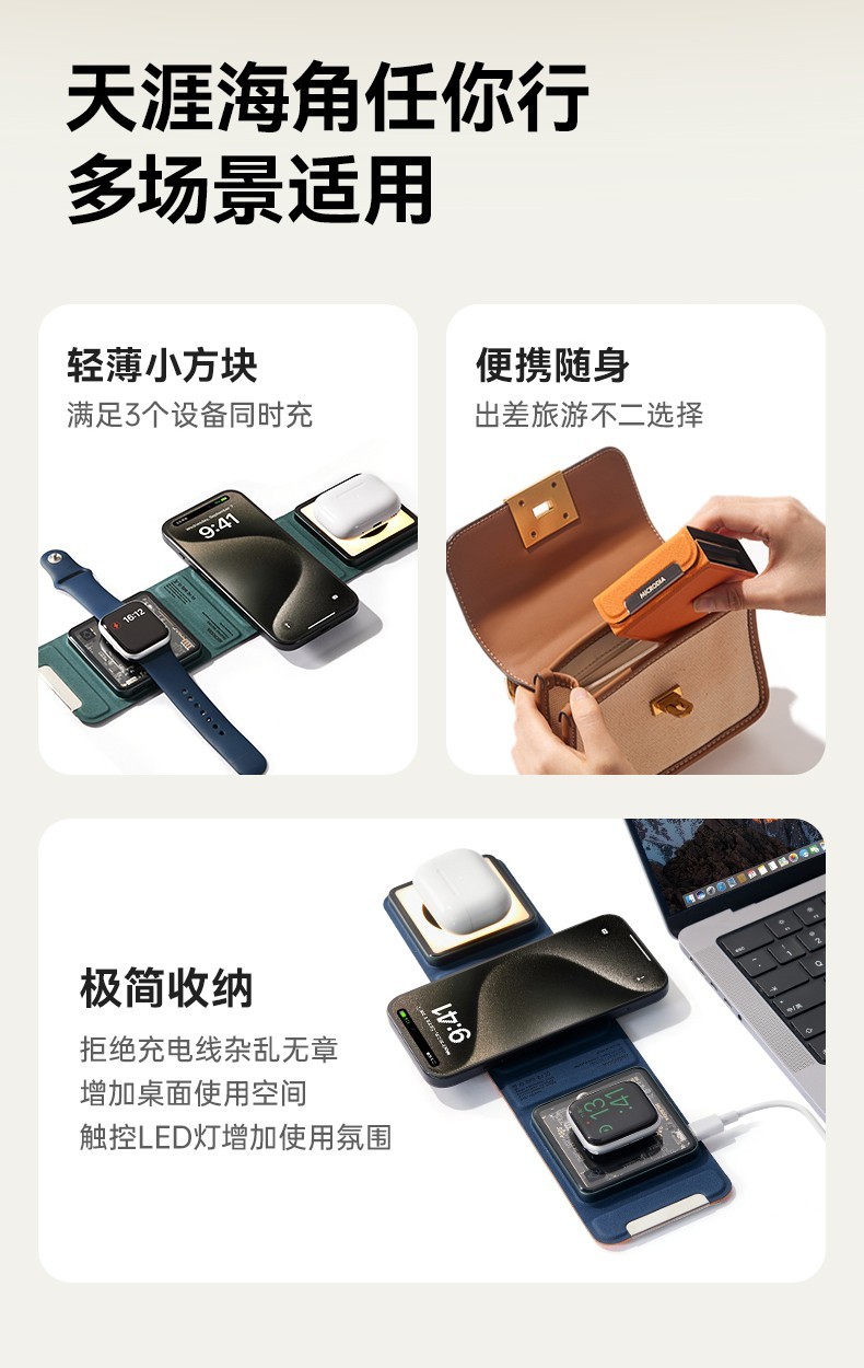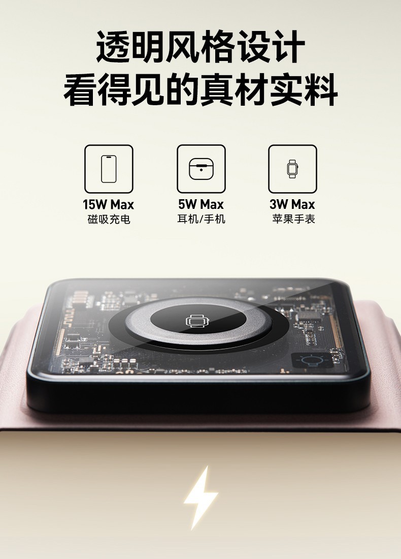 MICRODIA 磁吸五合一无线充电器33W折叠磁吸支架底座带夜灯