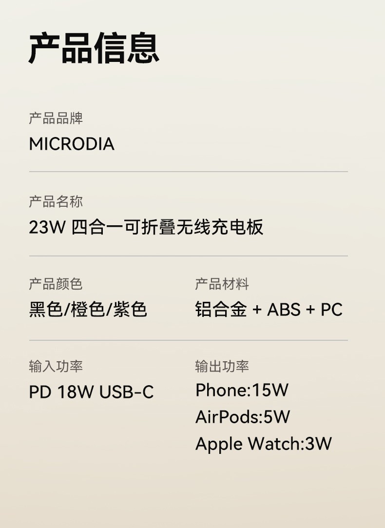 MICRODIA/高科迪 Aluminaire 23W 三合一铝制磁吸无线充电器