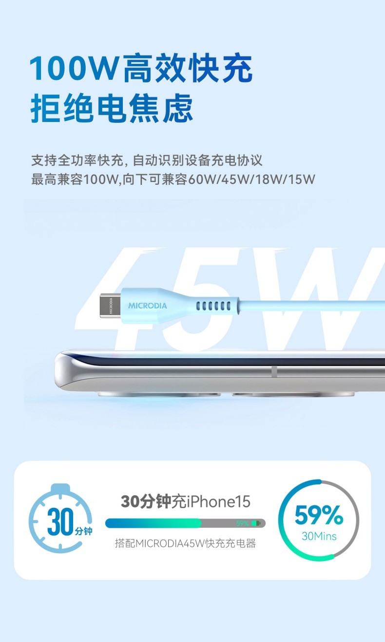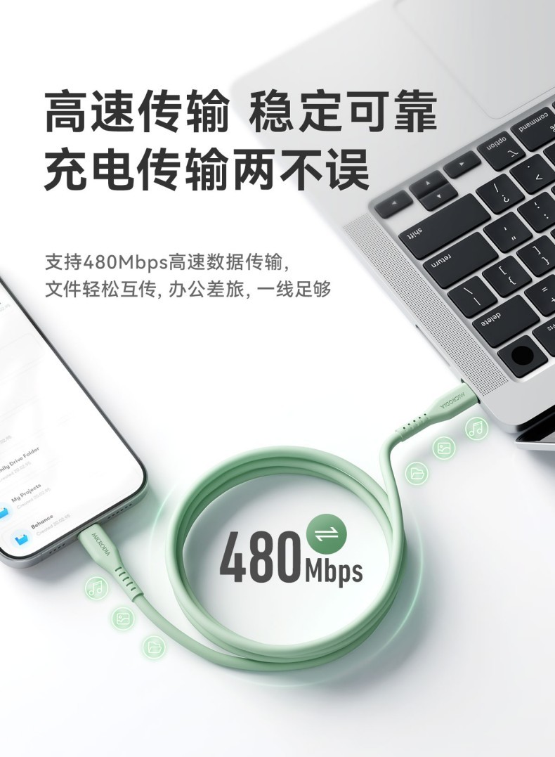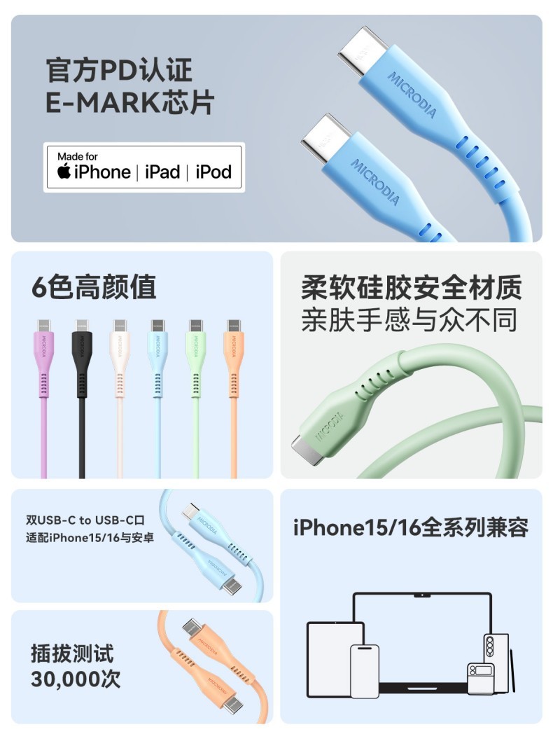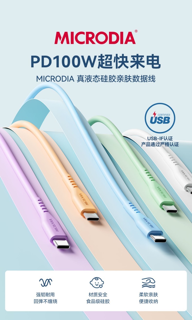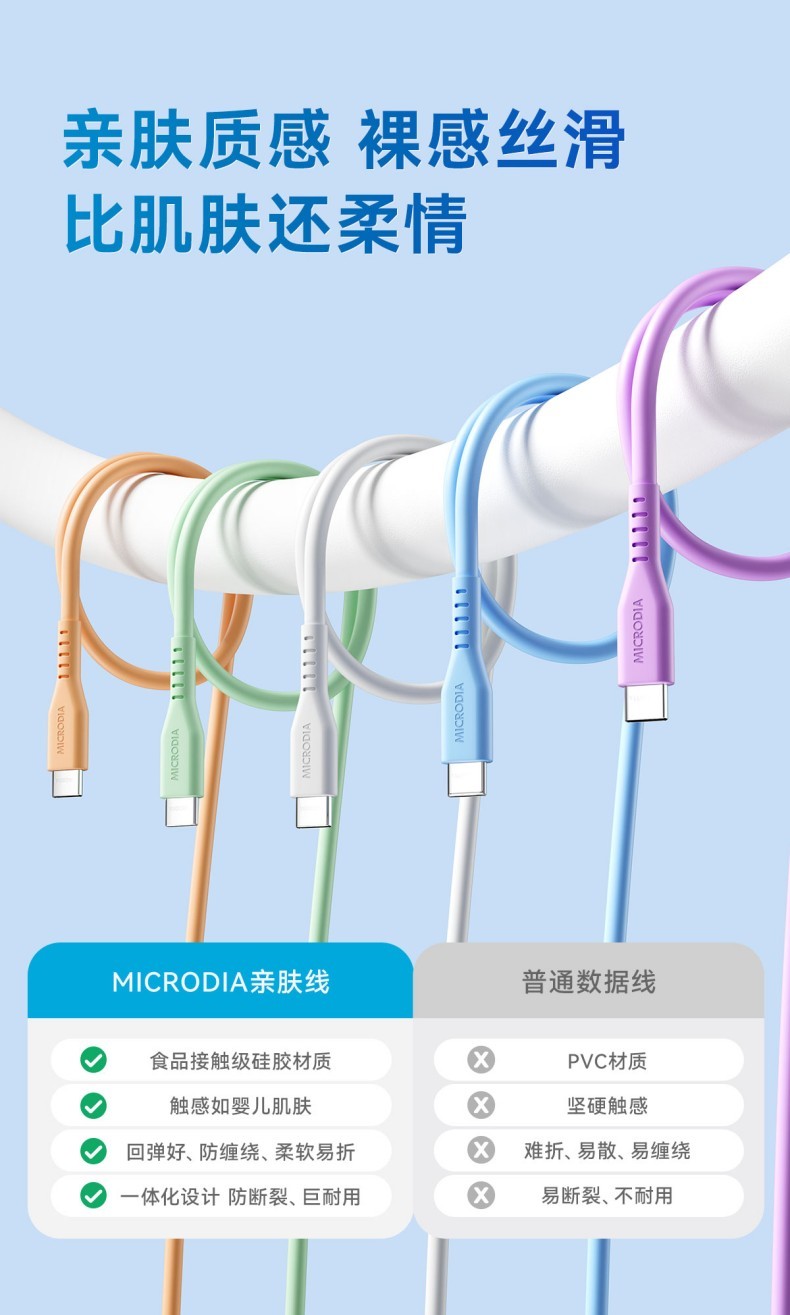 MICRODIA 真液态硅胶 数据线高速充电线适用iPhone15/16/华为mate60荣耀小米闪充手机电脑