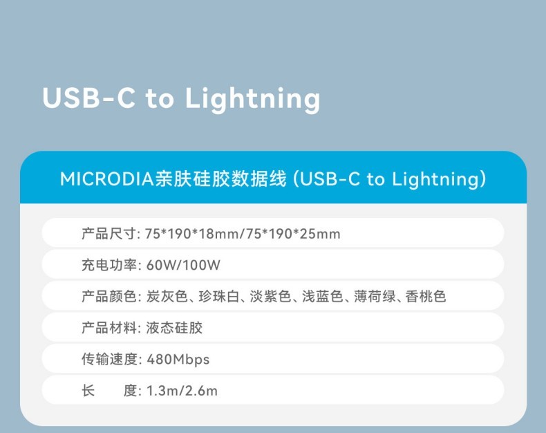 MICRODIA/高科迪 ExeCable 60W USB-C to Lightning 铜管快充数据线