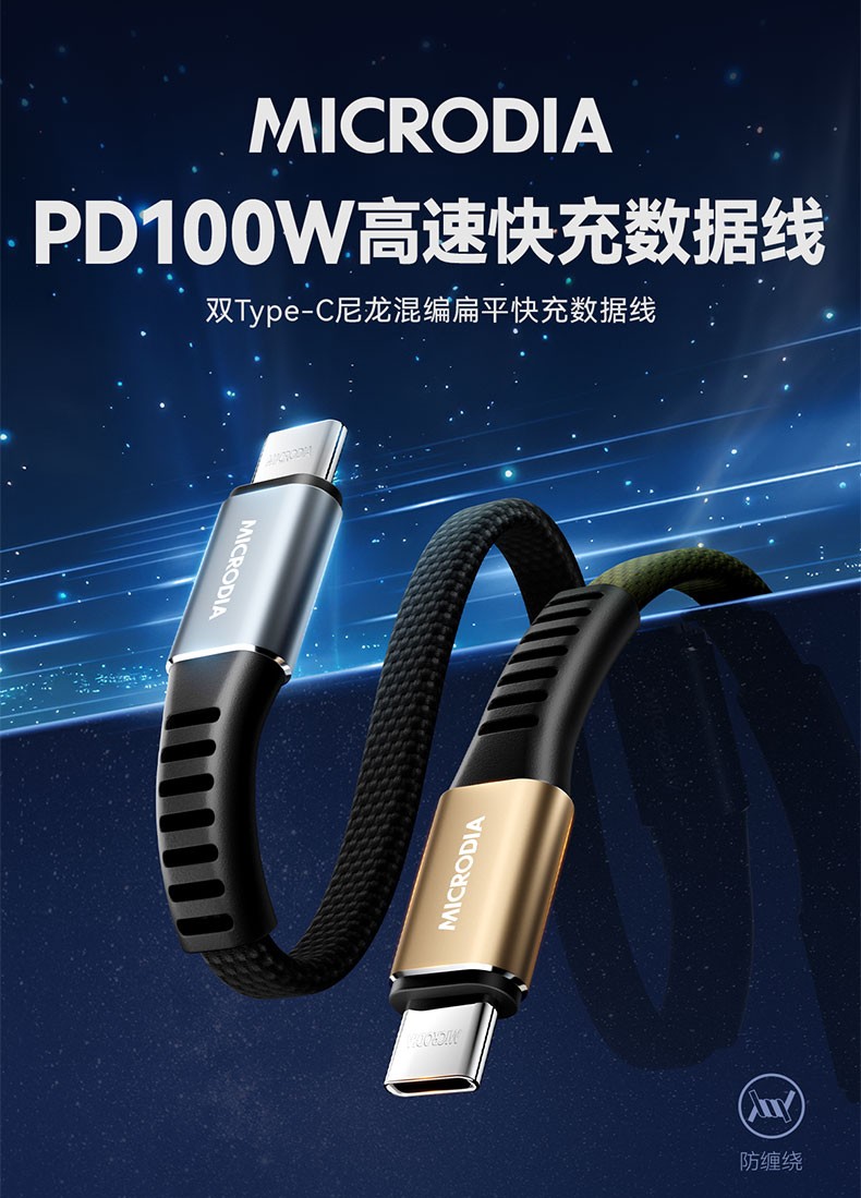 MICRODIA/高科迪 ExeCable 100W 尼龙扁平双头USB-C快充数据线