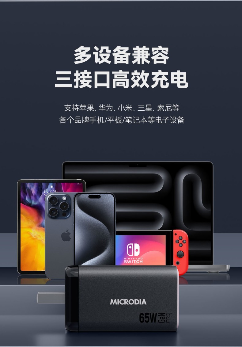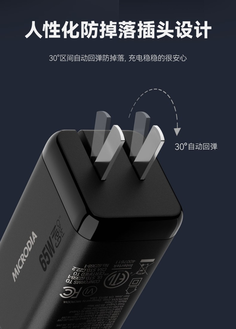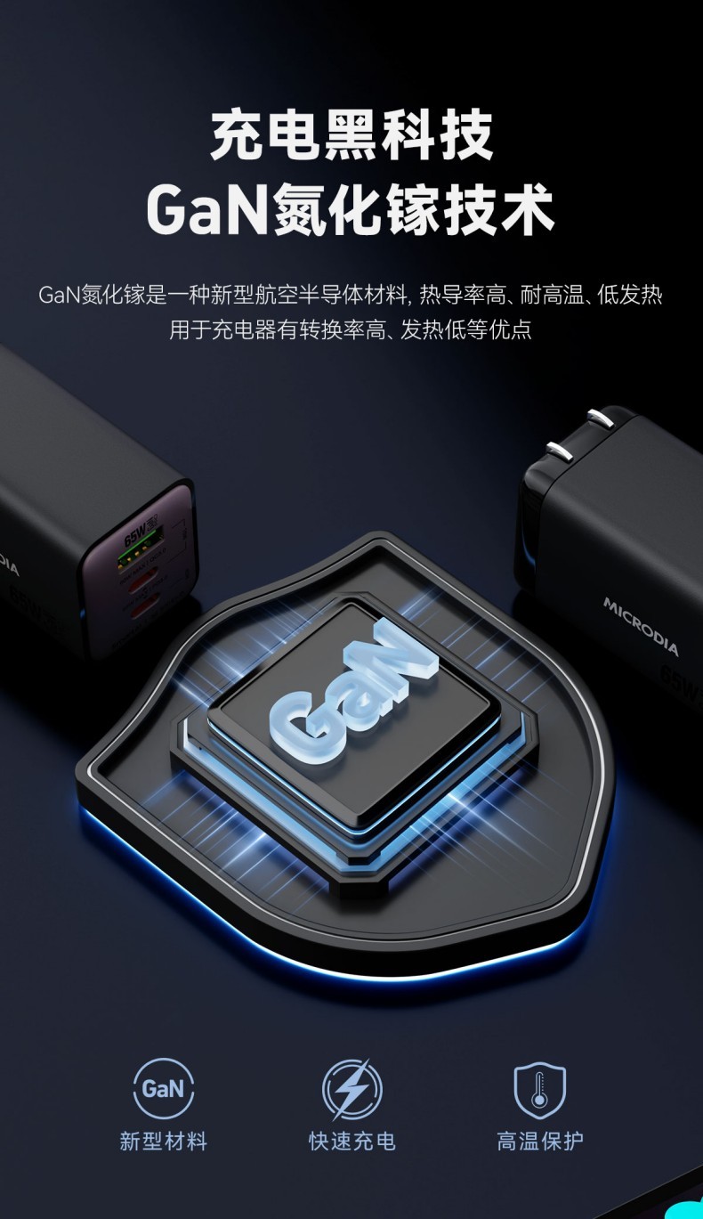唯妮海购 > MICRODIA适用苹果充电器双口typec折叠氮化镓Gan65W充电头