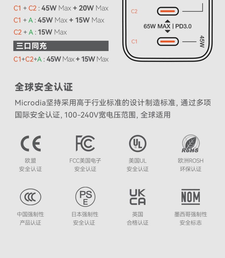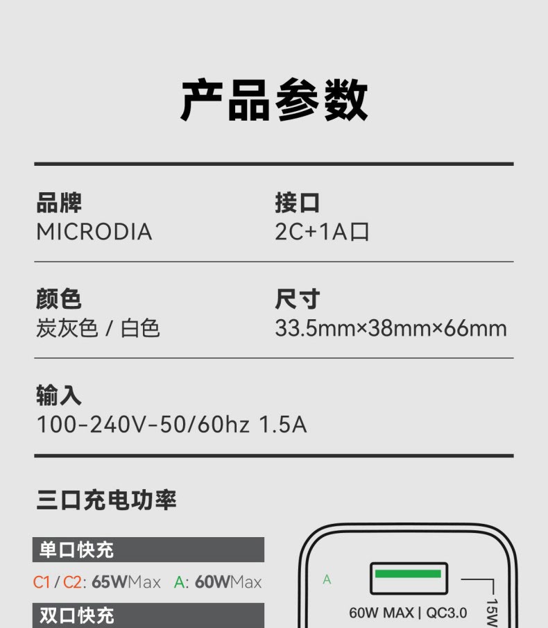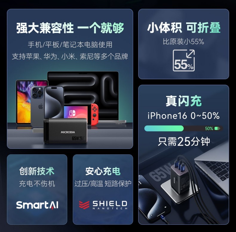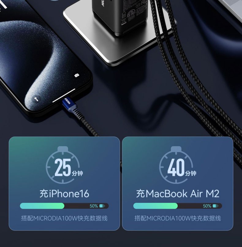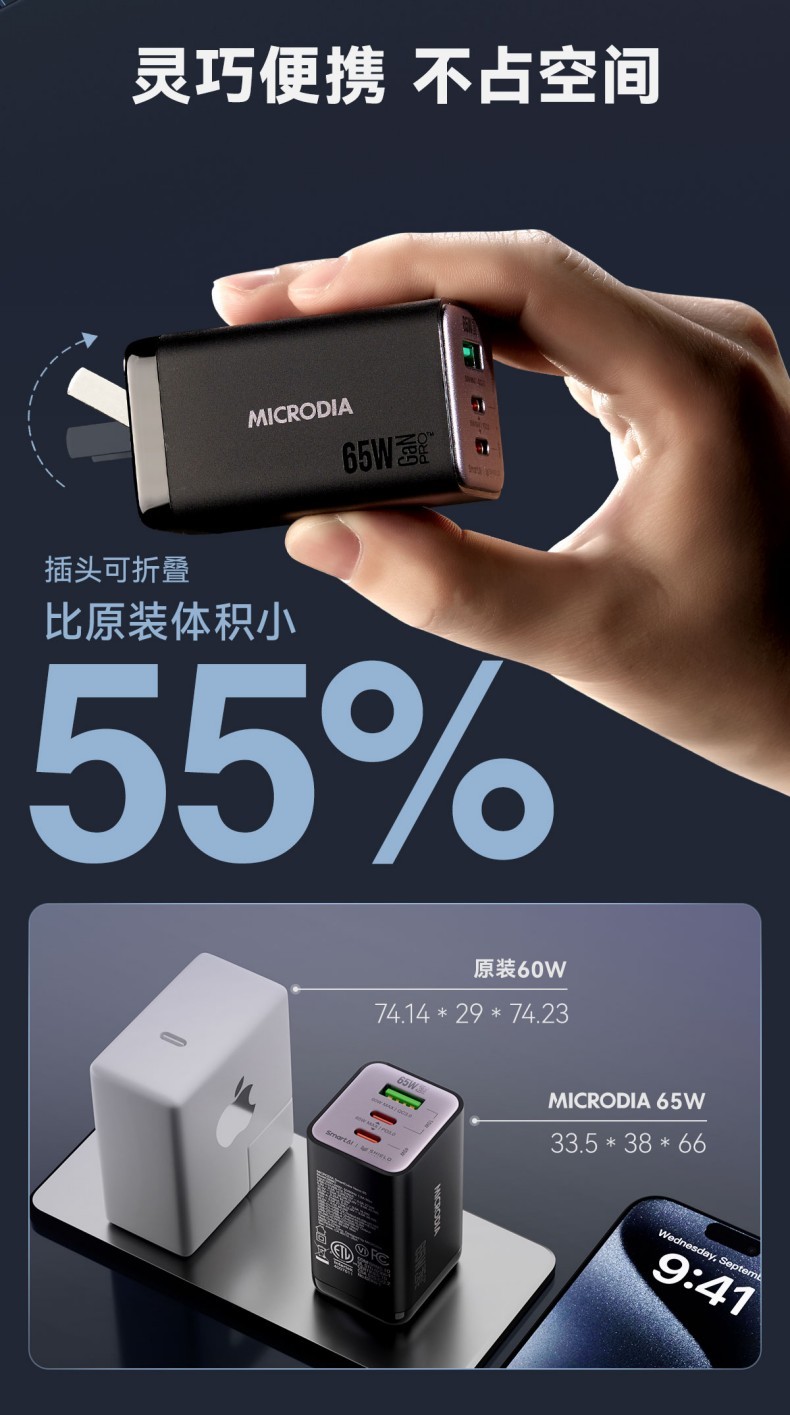 唯妮海购 > MICRODIA适用苹果充电器双口typec折叠氮化镓Gan65W充电头